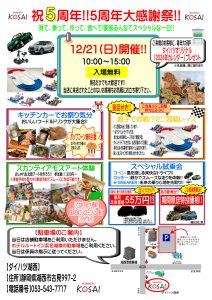 イベント詳細はこちら↓ https://daihatukosai-goshuunenn.my.canva.site/ いつもダイハツ湖西をご利用いただき、誠にありがとうございます! 日頃の感謝を込めて、ご家族みんなで楽しめるスペシャルな一日をご用意しました!👏 見て、乗って、作って、食べて…一日中楽しめるコンテンツが盛りだくさんです! もちろん、見るだけでも大歓迎! お気軽にご家族、ご友人と遊びに来てくださいね😊 📅 日時 2025年12月21日(日) 10:00~15:00 📍 場所 ダイハツ湖西 入場無料です! ✨気になるイベント内容は…👀 🚗 【おクルマ好きにはたまらない!】 早い者勝ち!当日発表の限定3台【55万円】特選中古車が登場!🚙💨 風が気持ちいい「コペン」や話題の「ロッキー」「e-SNEAKER」に乗れるスペシャル試乗会! 👨👩👧👦 【親子で楽しめるコンテンツ】 豪華景品付き!親子で熱中ミニ四駆レース!🏎️ (参加無料) おしゃれな北欧インテリア**「スカンディアモスアート」**作り体験🌿 (参加費1,500円~/事前予約も受付中!) 事前予約フォーム↓ https://docs.google.com/forms/d/1iJaeAQCapOp-CeQZ-4srWTNrasuXFcVBBXwQoiMq6LE/edit 😋 【お腹が空いたら…】 美味しいフード&ドリンクが大集合!キッチンカーがやってくる🚚 チラシ持参でポップコーンを無料プレゼント!🍿 (お子様1名様分) ⚠️ 【駐車場に関する大切なお知らせ】 当日は店舗駐車場をご利用いただけません。 臨時駐車場として「ホテルルートイン浜名湖様」の駐車場をご利用ください。 詳しくはチラシの地図をご確認ください。